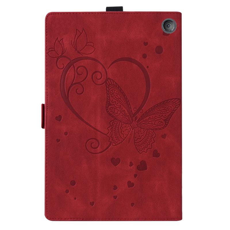 For Amazon Kindle Fire 7 2022 Love Butterfly Pattern Leather Tablet Case with Holder & Sleep(Red)
