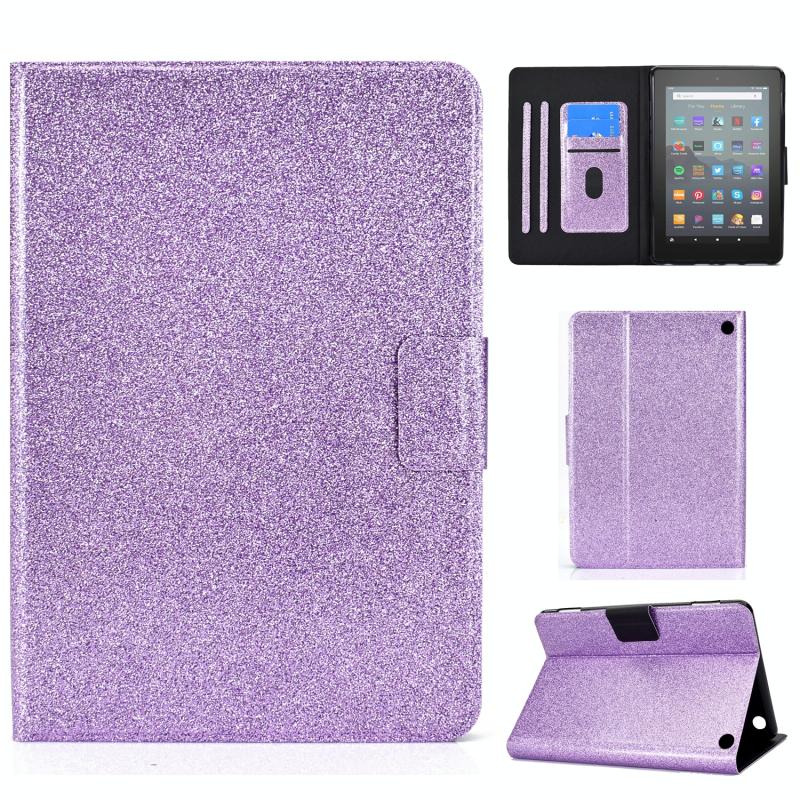 For Amazon Kindle Fire 7 2022 Varnish Glitter Powder Smart Leather Tablet Case(Purple)