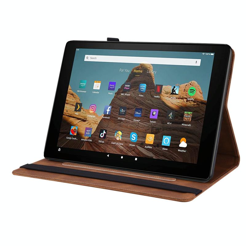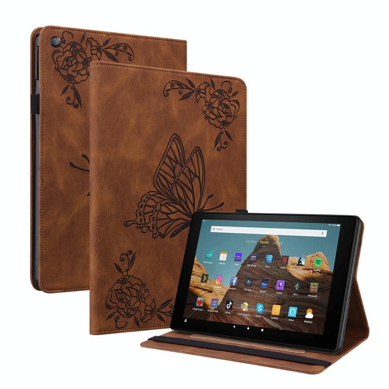 For Amazon Kindle Fire HD 10 2019 / 2017 Butterfly Flower Embossed Leather Tablet Case(Brown)