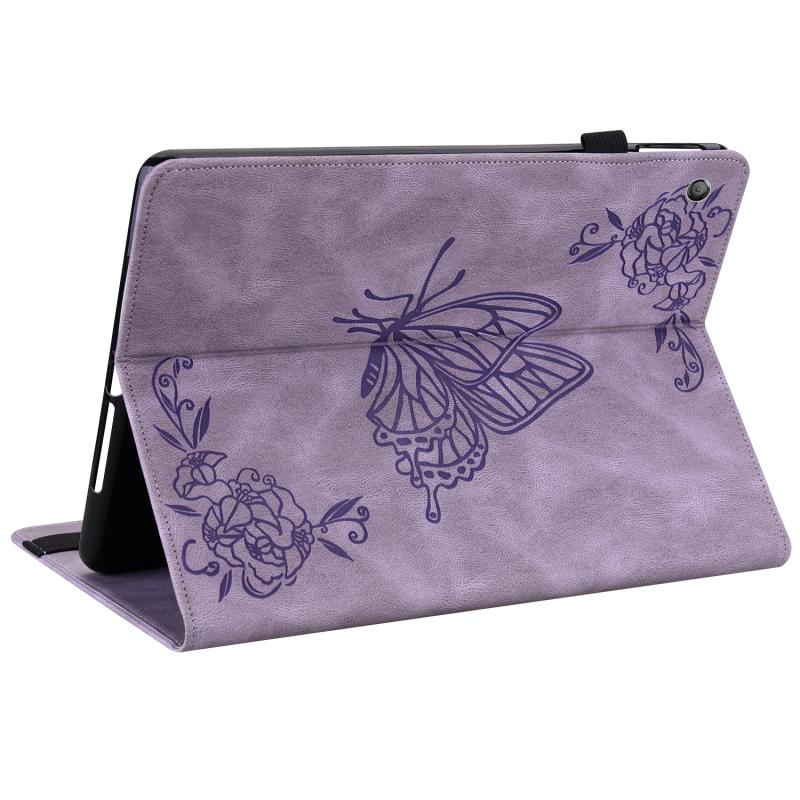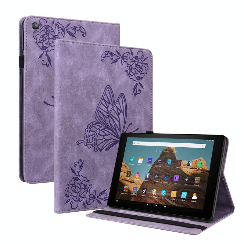 For Amazon Kindle Fire HD 10 2019 / 2017 Butterfly Flower Embossed Leather Tablet Case(Purple)