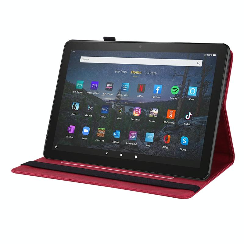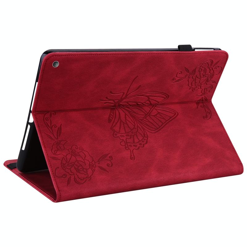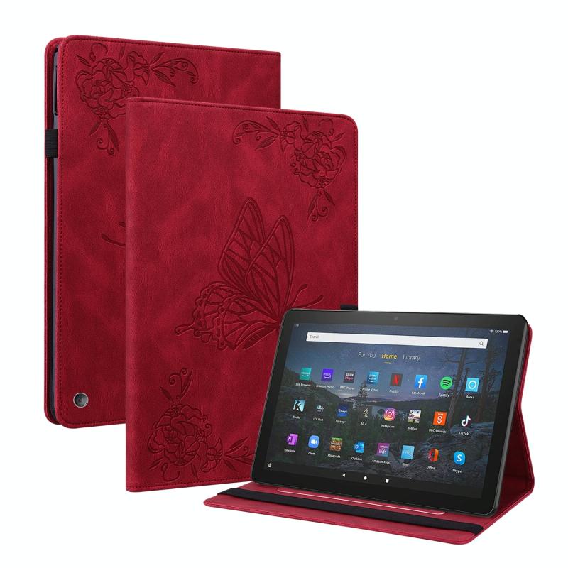 For Amazon Kindle Fire HD 10 2021 / 10 Plus 2021 Butterfly Flower Embossed Leather Tablet Case(Red)