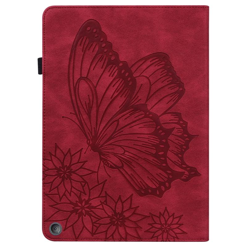 For Amazon Kindle Fire HD 8 2020 / 8 Plus Big Butterfly Embossed Smart Leather Tablet Case(Red)