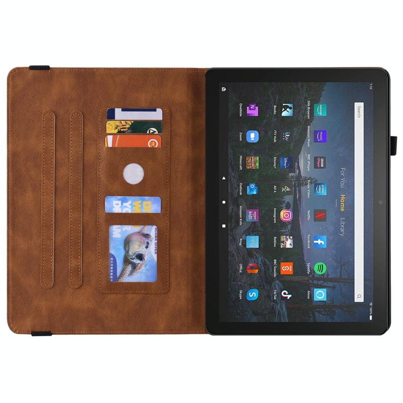 For Amazon Kindle Fire HD 8 2020 Butterfly Flower Embossed Leather Tablet Case(Brown)
