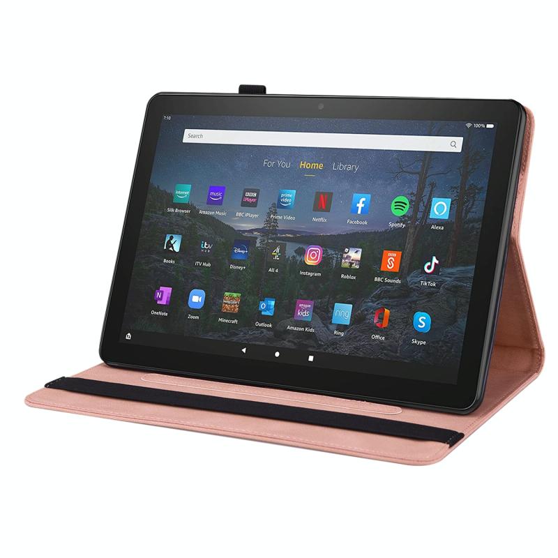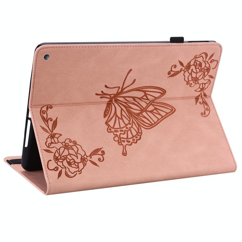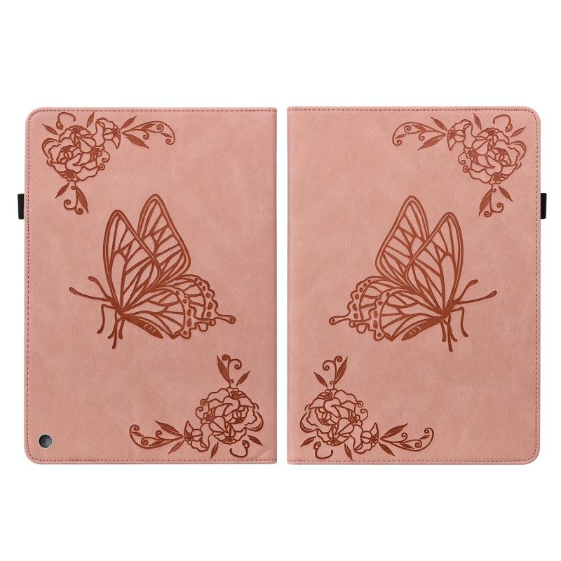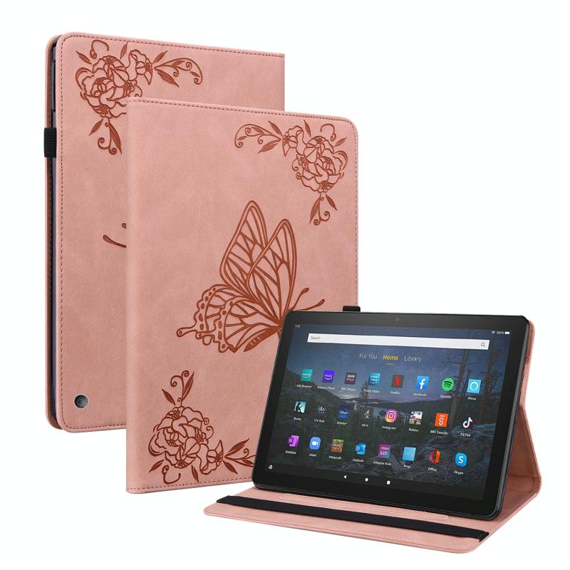 For Amazon Kindle Fire HD 8 2020 Butterfly Flower Embossed Leather Tablet Case(Rose Gold)
