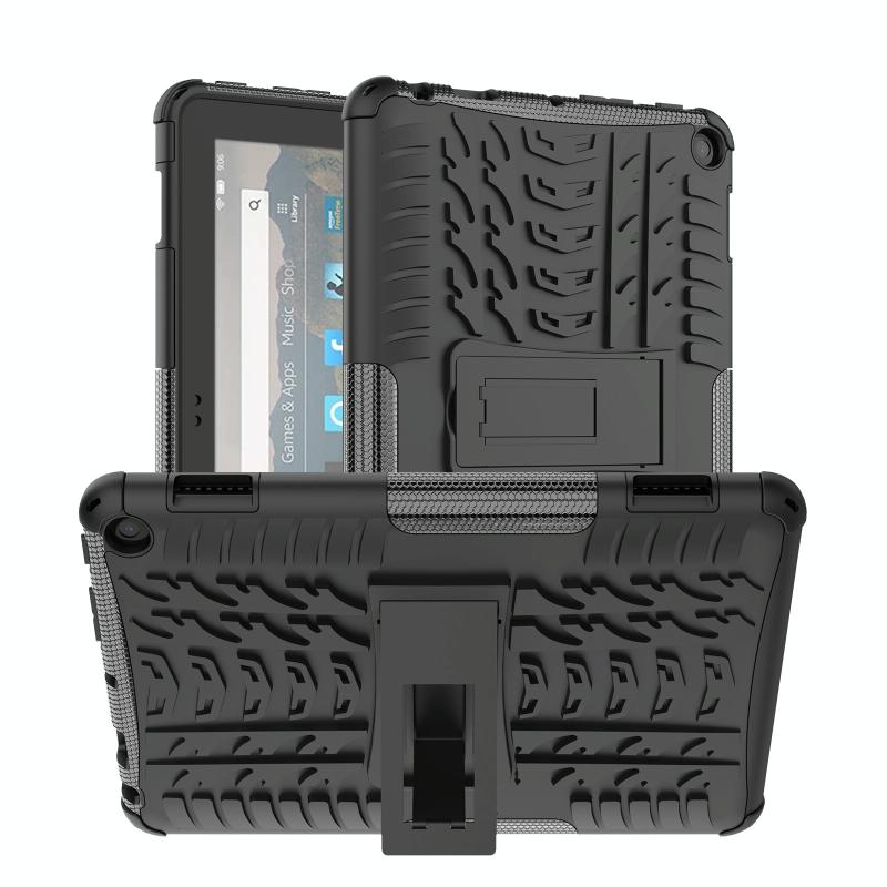 For Amazon Kindle Fire HD 8 2022 Tire Texture TPU + PC Tablet Case with Holder(Black)