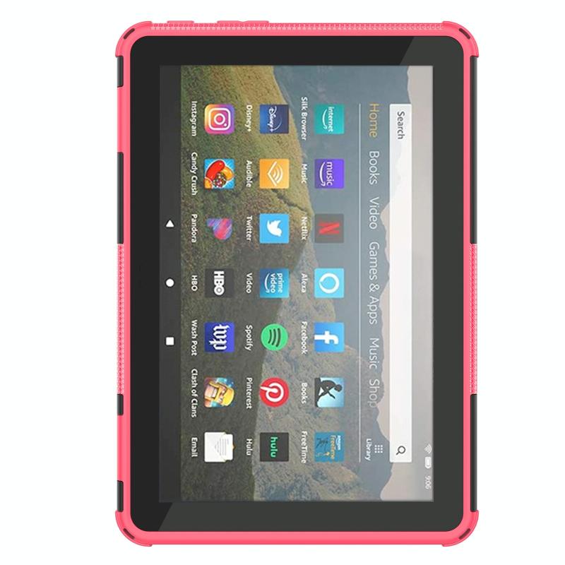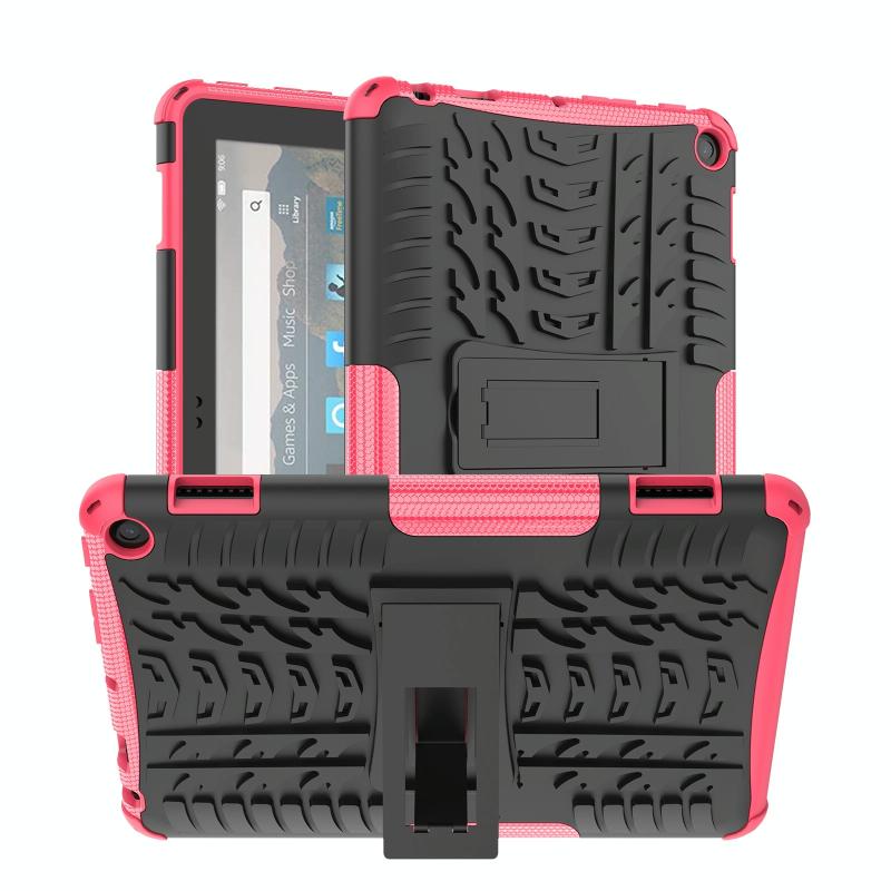 For Amazon Kindle Fire HD 8 2022 Tire Texture TPU + PC Tablet Case with Holder(Pink)