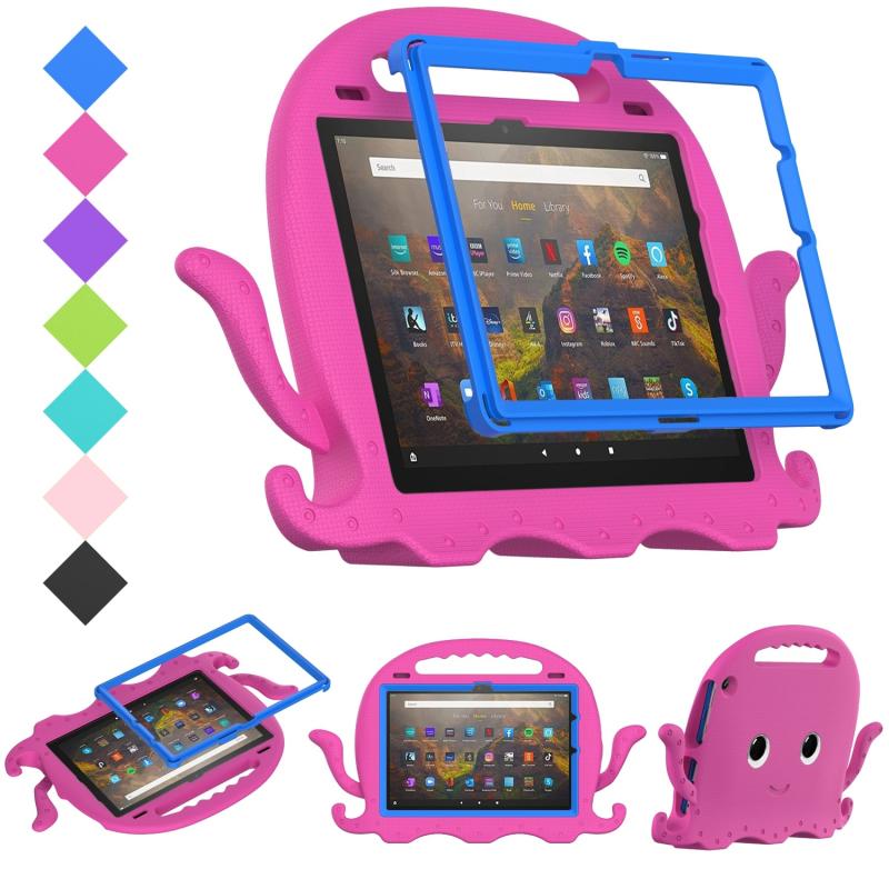 For Amazon Kindle Fire HD10 2021 Octopus Style EVA + PC Tablet Case with Strap(RoseRed)