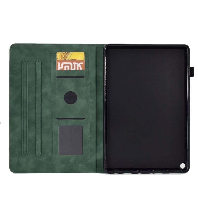 For Amazon Kindle Fire HD10 2021 Tower Embossed Leather Smart Tablet Case(Green)