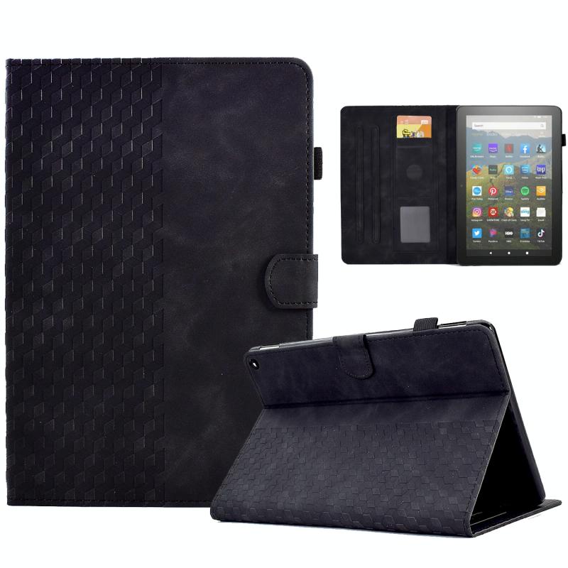 For Amazon Kindle Fire HD10 Plus 2021 Rhombus Embossed Leather Tablet Case(Black)