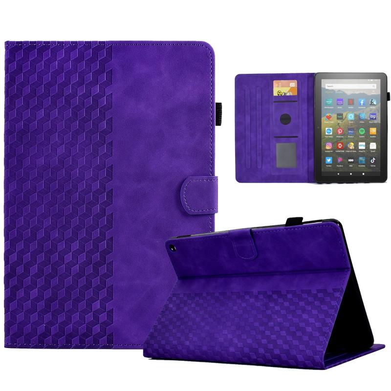 For Amazon Kindle Fire HD10 Plus 2021 Rhombus Embossed Leather Tablet Case(Purple)