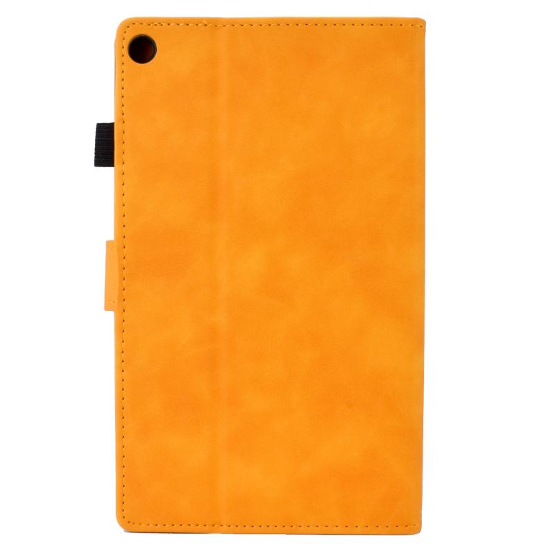 For Amazon Kindle Fire HD8 2018/2017/2016 Peony Butterfly Embossed Leather Smart Tablet Case(Khaki)