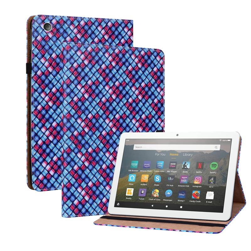 For Amazon Kindle Fire HD8 Color Weave Leather Tablet Case with Holder(Blue)