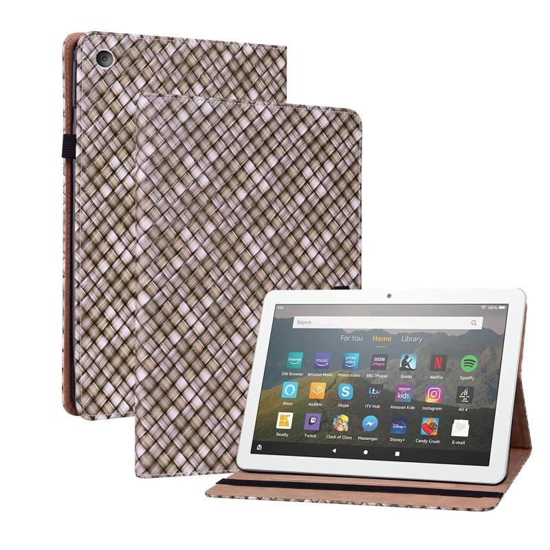 For Amazon Kindle Fire HD8 Color Weave Leather Tablet Case with Holder(Brown)