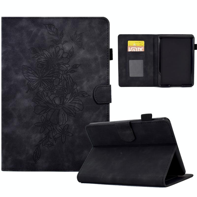 For Amazon Kindle Paperwhite 12th 2024 Peony Butterfly Embossed Leather Smart Tablet Case(Black)