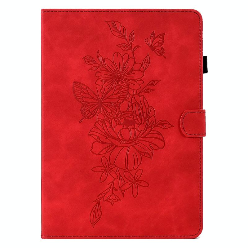 For Amazon Kindle Paperwhite 12th 2024 Peony Butterfly Embossed Leather Smart Tablet Case(Red)