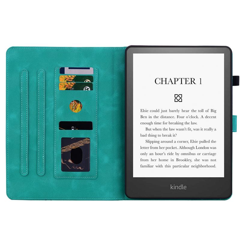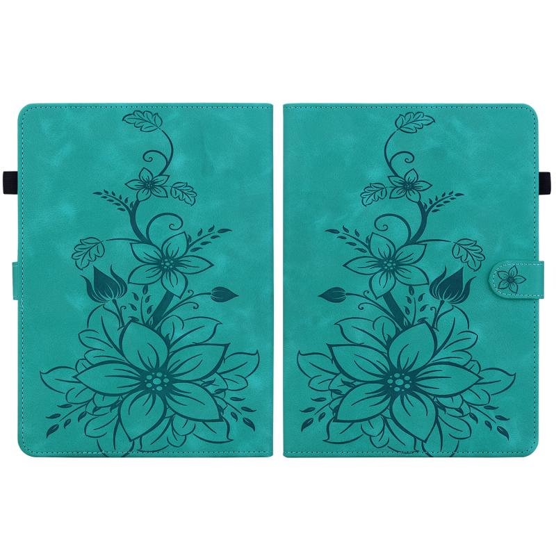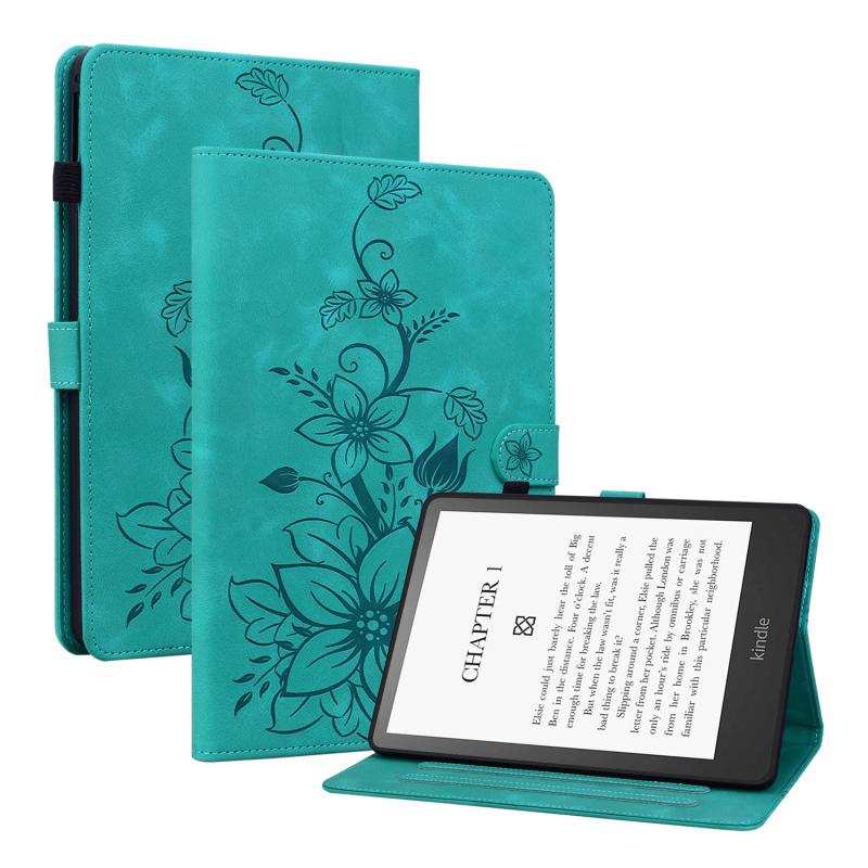 For Amazon Kindle Paperwhite 12th Gen 2024 Lily Embossed Leather Smart Tablet Case(Green)
