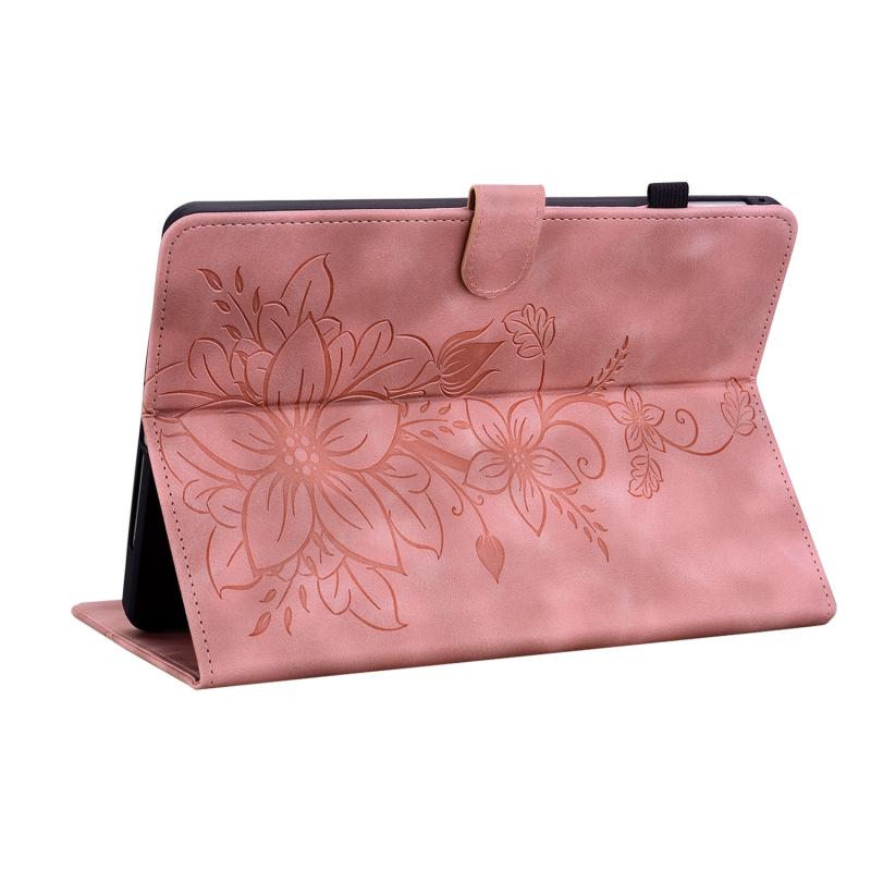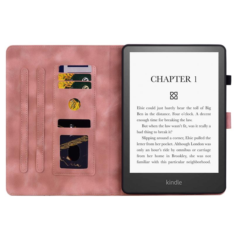 For Amazon Kindle Paperwhite 12th Gen 2024 Lily Embossed Leather Smart Tablet Case(Pink)