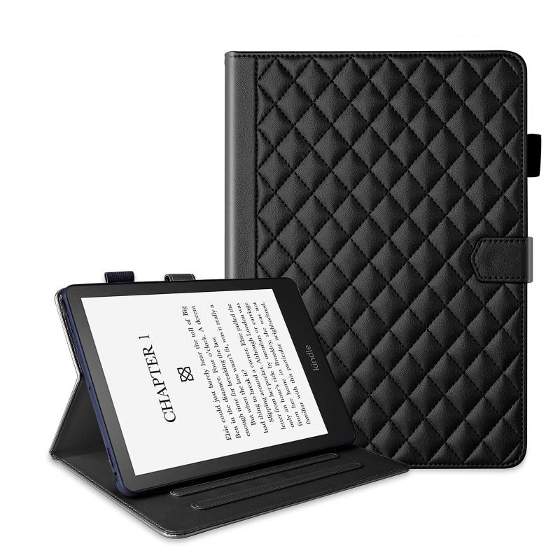 For Amazon Kindle Paperwhite 12th Gen 2024 Rhombus Lattice Leather Tablet Case(Black)