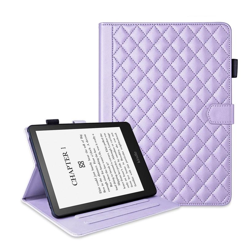 For Amazon Kindle Paperwhite 12th Gen 2024 Rhombus Lattice Leather Tablet Case(Purple)