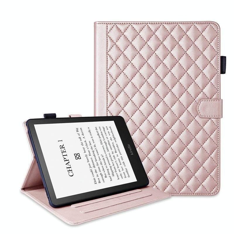 For Amazon Kindle Paperwhite 12th Gen 2024 Rhombus Lattice Leather Tablet Case(Rose Gold)