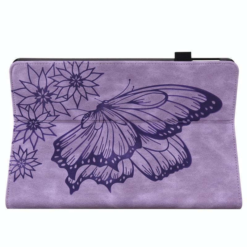 For Amazon Kindle Paperwhite 4 / 3 / 2 / 1 Big Butterfly Embossed Smart Leather Tablet Case(Purple)