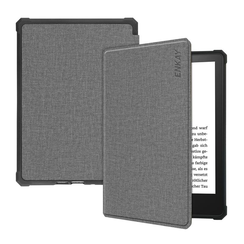 For Amazon Kindle Paperwhite 5 2021 ENKAY Solid Color Denim Texture Horizontal Flip Leather Tablet Case with Sleep / Wake-up Function(Grey) (ENKAY)