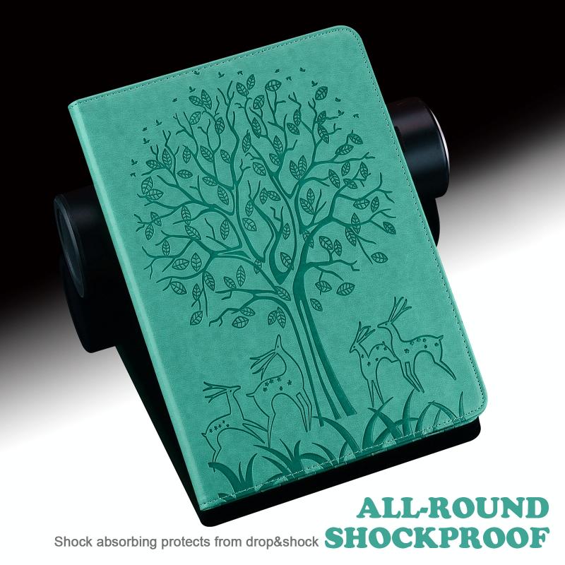 For Amazon Kindle Paperwhite 5 2021 Tree & Deer Pattern Pressed Printing Leather Tablet Case with Sleep / Wake-up(Green)