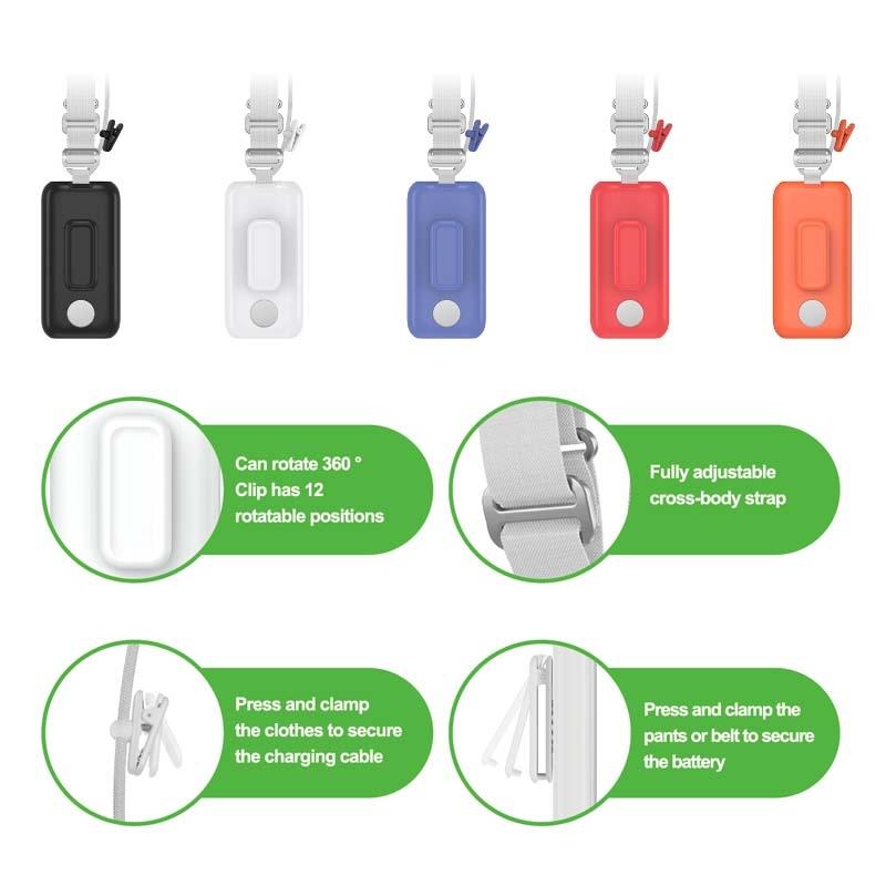 2. The battery case comes with a shoulder strap and a belt clip design, offering maximum convenience as it can be hung on the shoulder, neck, or directly clipped onto a belt. This allows for hands-free carrying whether standing, sitting, or walking.