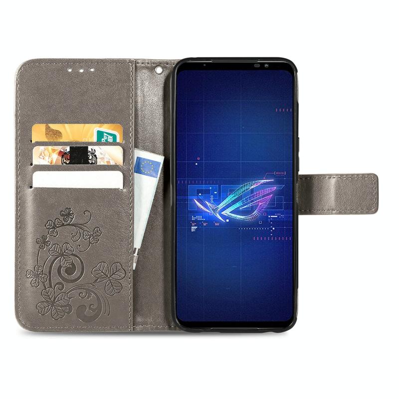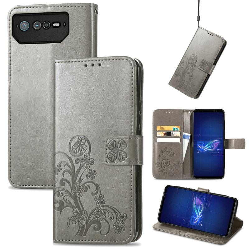 For Asus ROG Phone 6 Four-leaf Clasp Embossed Buckle Leather Phone Case(Gray)