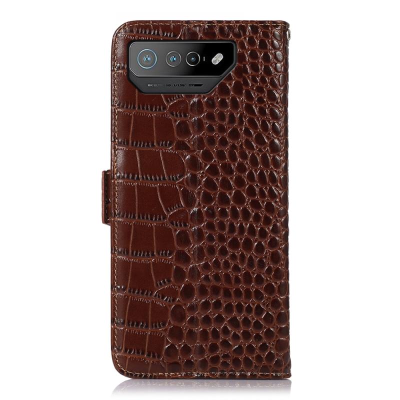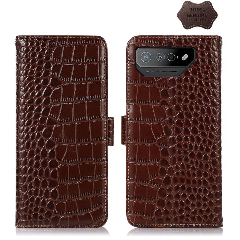For Asus ROG Phone 7 Crocodile Top Layer Cowhide Leather Phone Case(Brown)