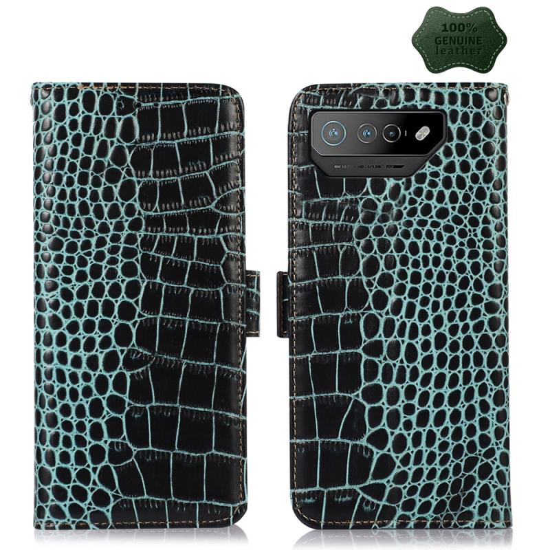 For Asus ROG Phone 7 Crocodile Top Layer Cowhide Leather Phone Case(Green)