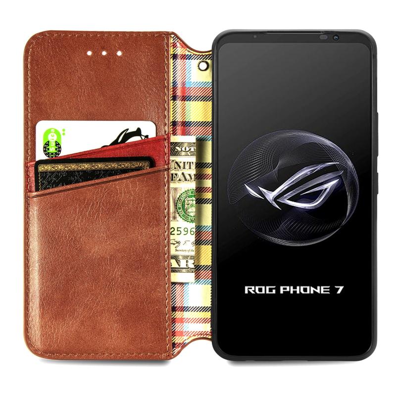 For ASUS ROG Phone 7 Cubic Grid Pressed Magnetic Leather Phone Case(Brown)