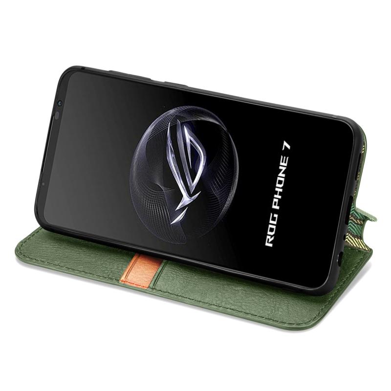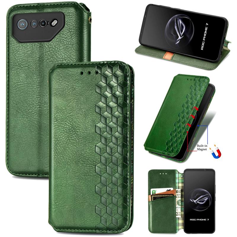For ASUS ROG Phone 7 Cubic Grid Pressed Magnetic Leather Phone Case(Green)