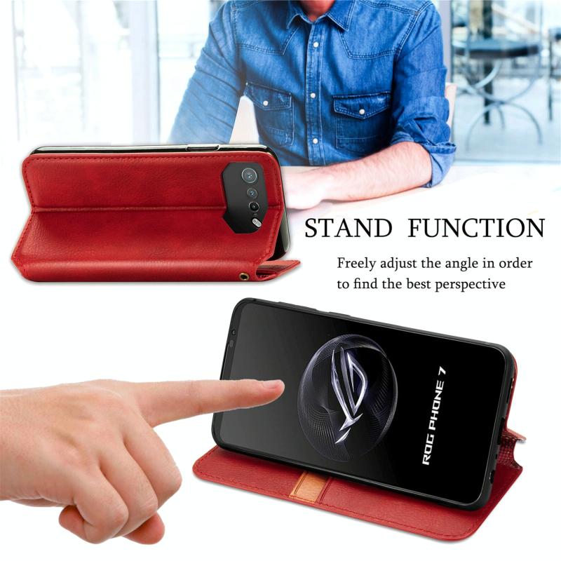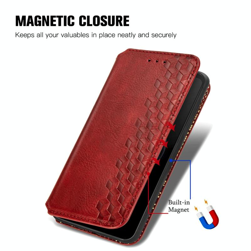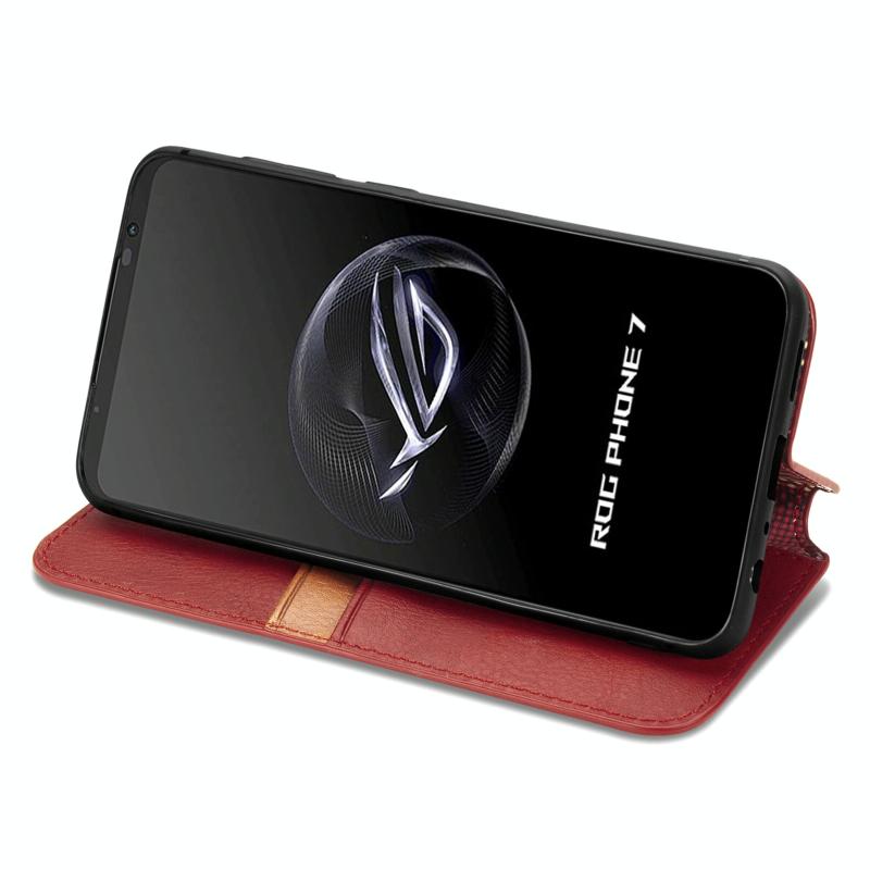 For ASUS ROG Phone 7 Cubic Grid Pressed Magnetic Leather Phone Case(Red)