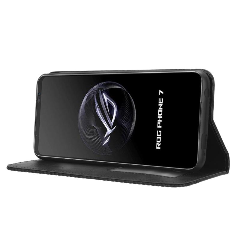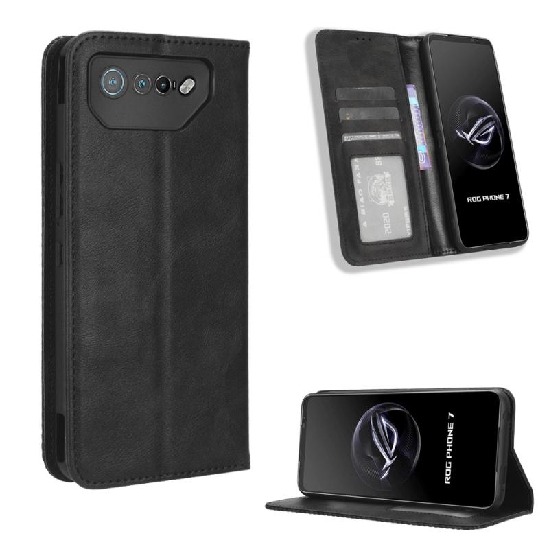 For ASUS ROG Phone 7 Magnetic Buckle Retro Texture Leather Phone Case(Black)