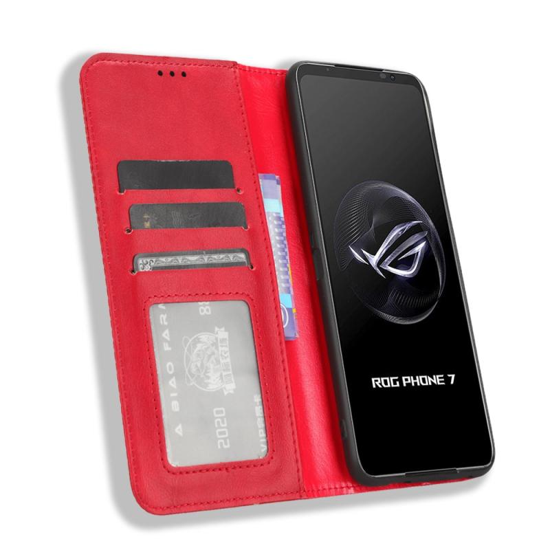 For ASUS ROG Phone 7 Magnetic Buckle Retro Texture Leather Phone Case(Red)
