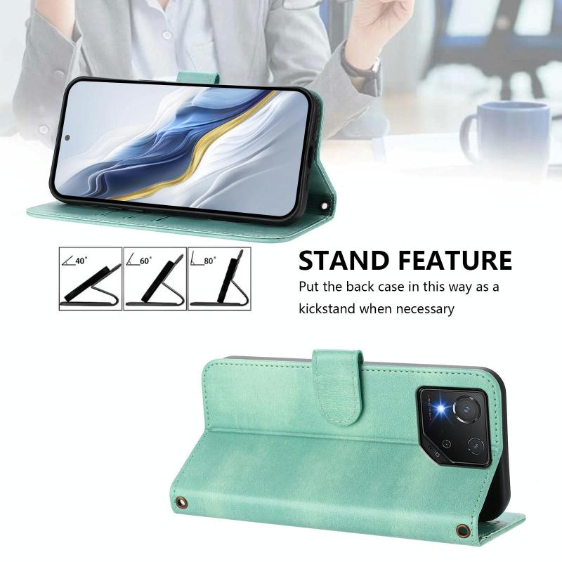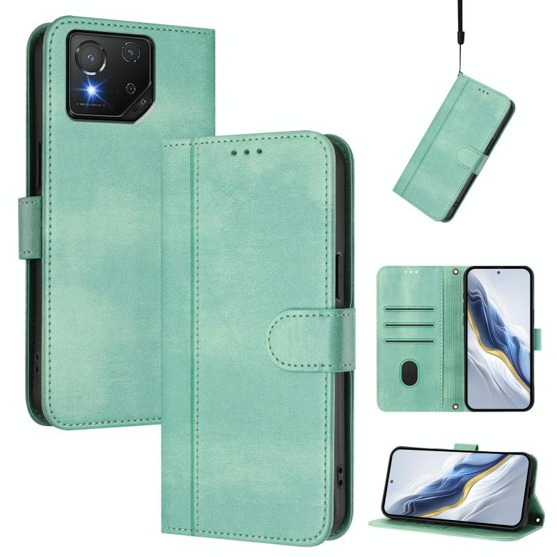 For ASUS ROG Phone 8 / 8 Pro Line Splicing Buckle Retro Leather Phone Case(Mint Green)