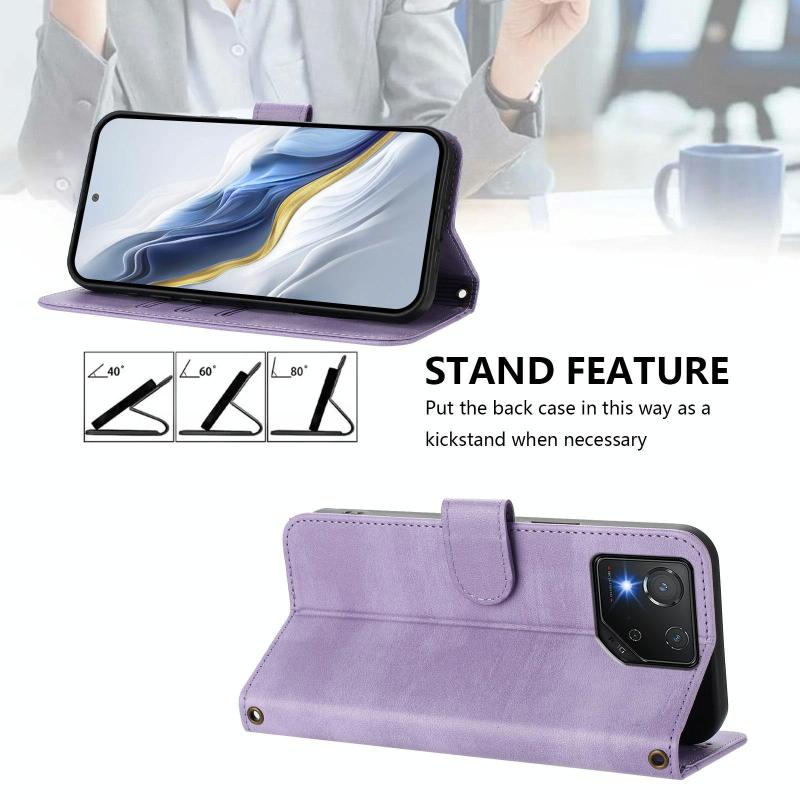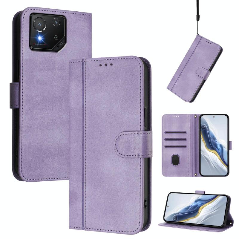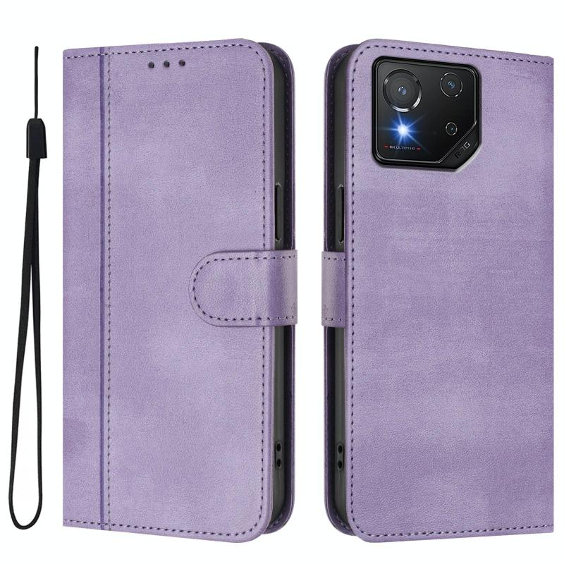 For ASUS ROG Phone 8 / 8 Pro Line Splicing Buckle Retro Leather Phone Case(Purple)