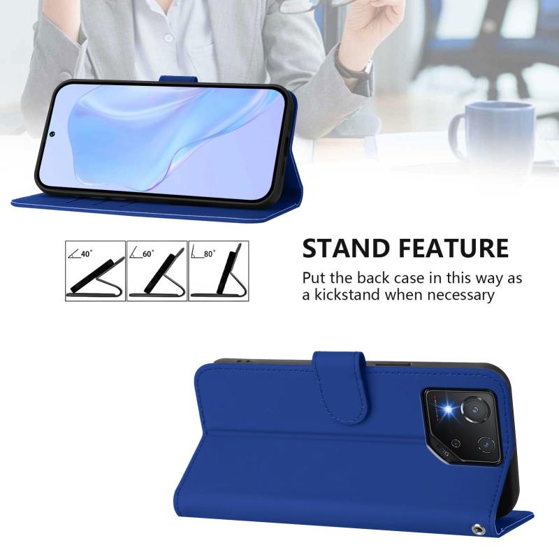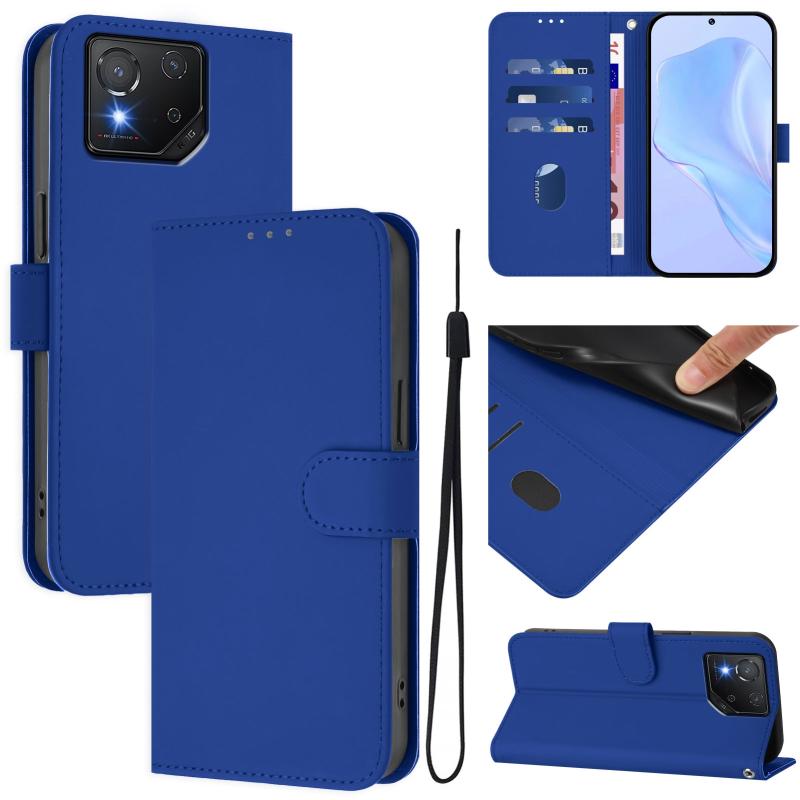 For Asus ROG Phone 8 / 8 Pro Skin Feel Solid Color Leather Phone Case with Lanyard(Dark Blue)