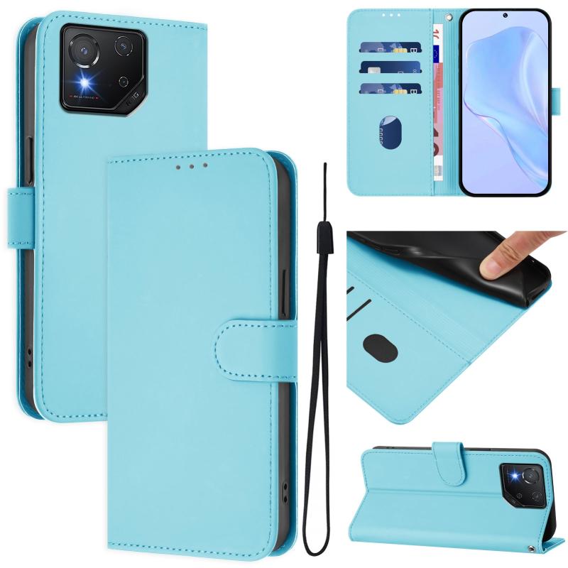 For Asus ROG Phone 8 / 8 Pro Skin Feel Solid Color Leather Phone Case with Lanyard(Sky Blue)