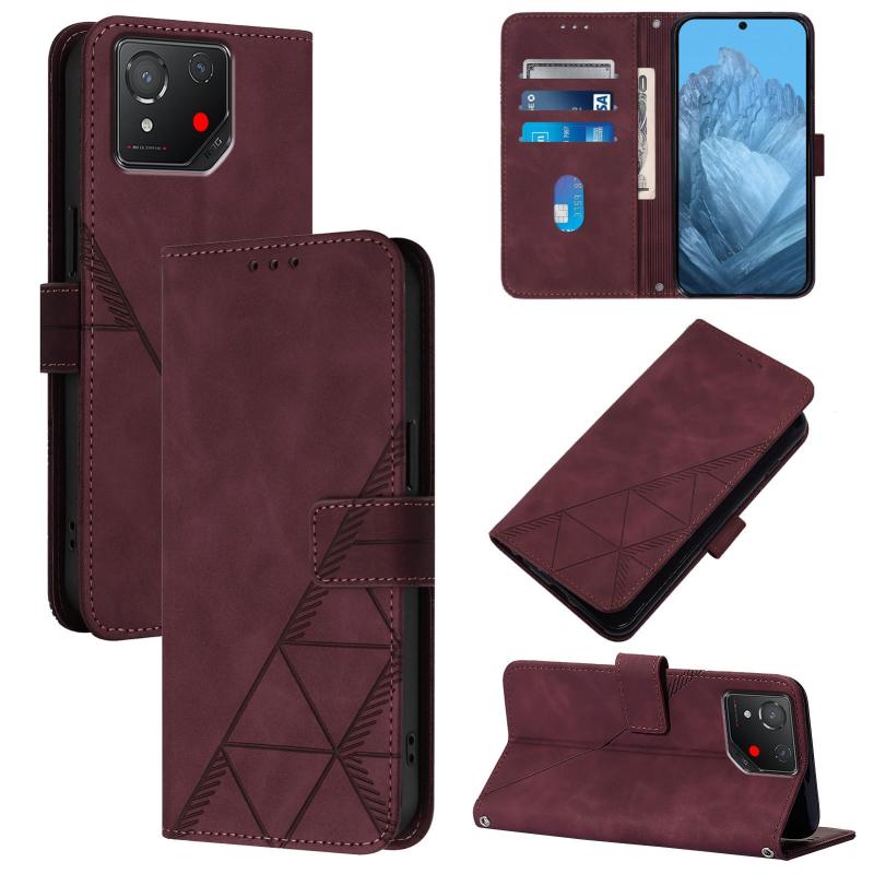 For Asus ROG Phone 8 Crossbody 3D Embossed Flip Leather Phone Case(Wine Red)