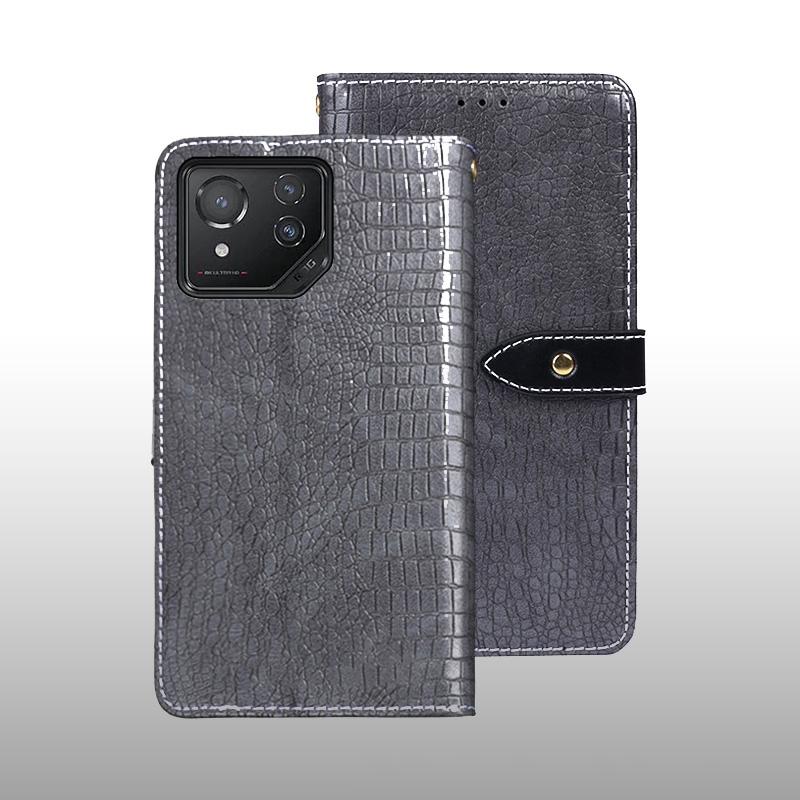 For ASUS ROG Phone 8 idewei Crocodile Texture Leather Phone Case(Grey) (idewei)