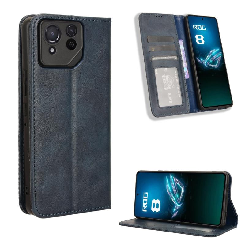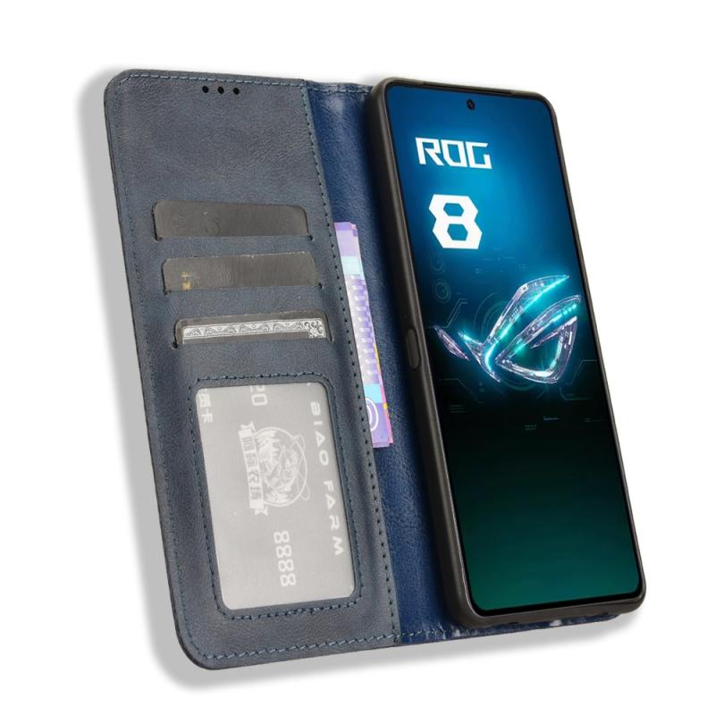For ASUS ROG Phone 8 Pro Magnetic Buckle Retro Texture Leather Phone Case(Blue)