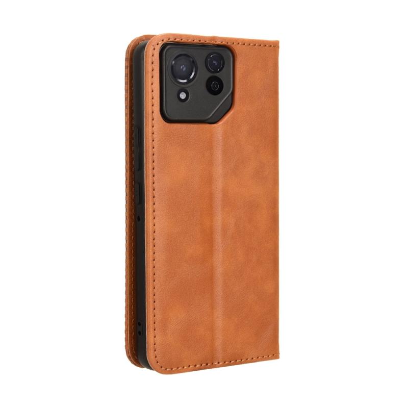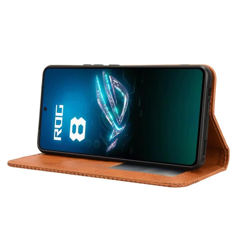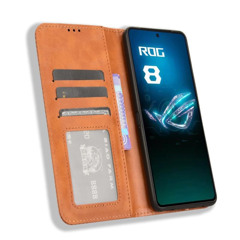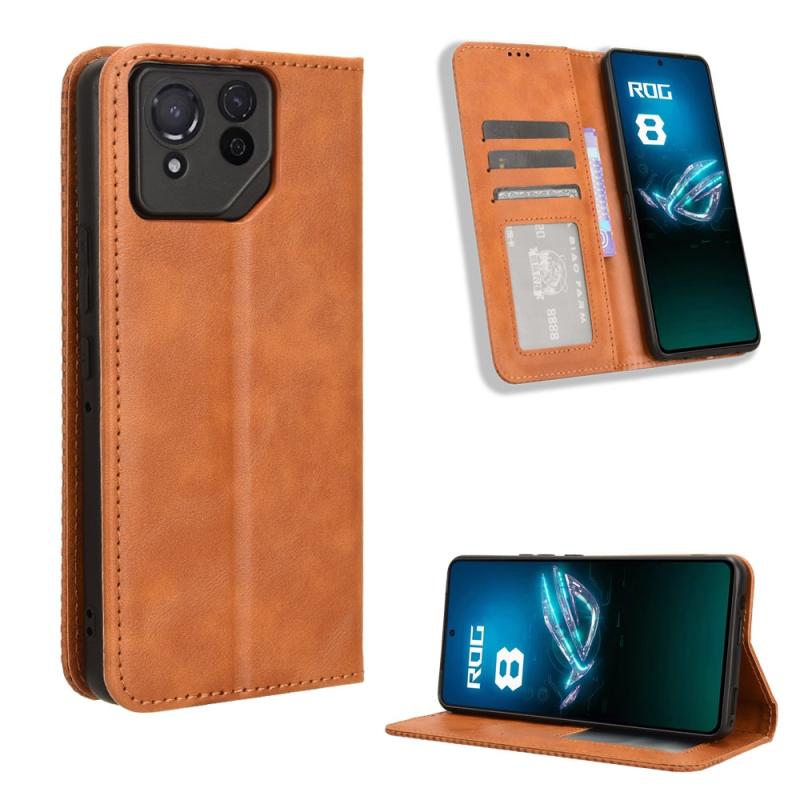 For ASUS ROG Phone 8 Pro Magnetic Buckle Retro Texture Leather Phone Case(Brown)