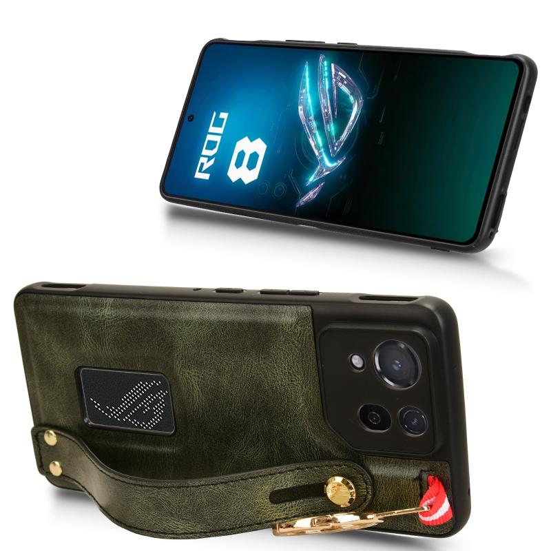 For Asus ROG Phone 8 Pro Wristband Leather Back Phone Case(Green)
