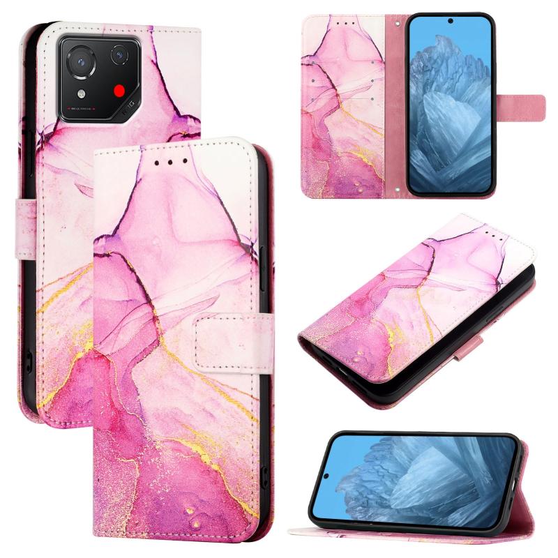 For Asus ROG Phone 8 PT003 Marble Pattern Flip Leather Phone Case(Pink Purple Gold)