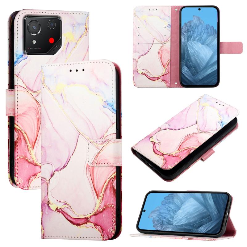 For Asus ROG Phone 8 PT003 Marble Pattern Flip Leather Phone Case(Rose Gold)