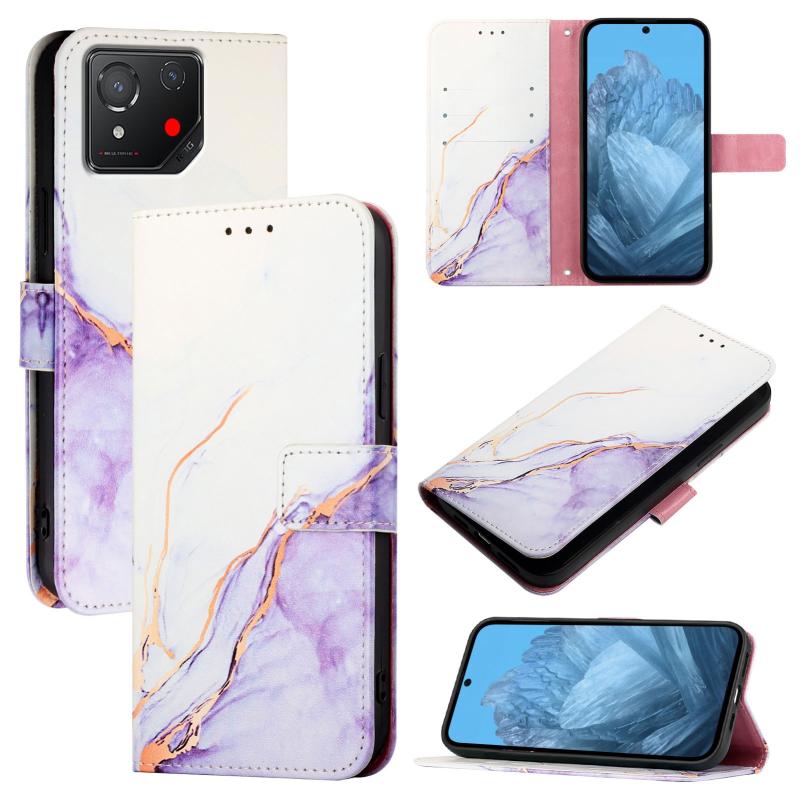 For Asus ROG Phone 8 PT003 Marble Pattern Flip Leather Phone Case(White Purple)