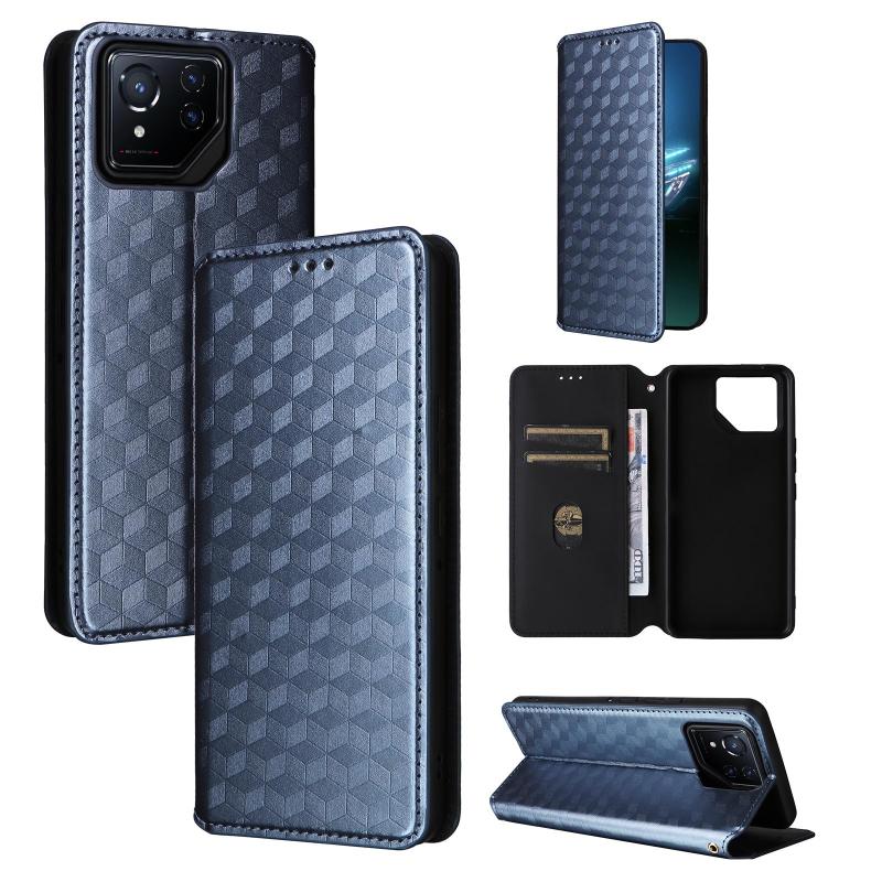 For Asus ROG Phone 8 / ROG Phone 8 Pro Cubic Grid Texture Flip Leather Phone Case(Blue)