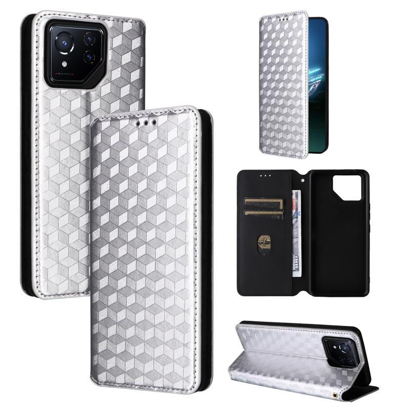For Asus ROG Phone 8 / ROG Phone 8 Pro Cubic Grid Texture Flip Leather Phone Case(Silver)